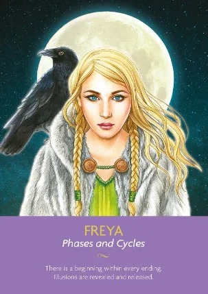 Freya, which means ‘Lady’, is the Norse goddess of the moon and love. She is the twin flame of Odin and a warrior goddess who offers deep spiritual and physical protection to those who call on her. She will stand before you with her shield and spear, keeping you safe from harm. She works closely with moon energy and helps us recognize that our life is a cycle that is always changing. She herself is the maiden, the mother, and the crone aspect of all women and guides them to see the wisdom these cycles bring. We all go through phases and cycles of growth, and Freya is the energy that supports this. She has a raven spirit totem, which is said to represent her capacity to travel between heaven and Earth.